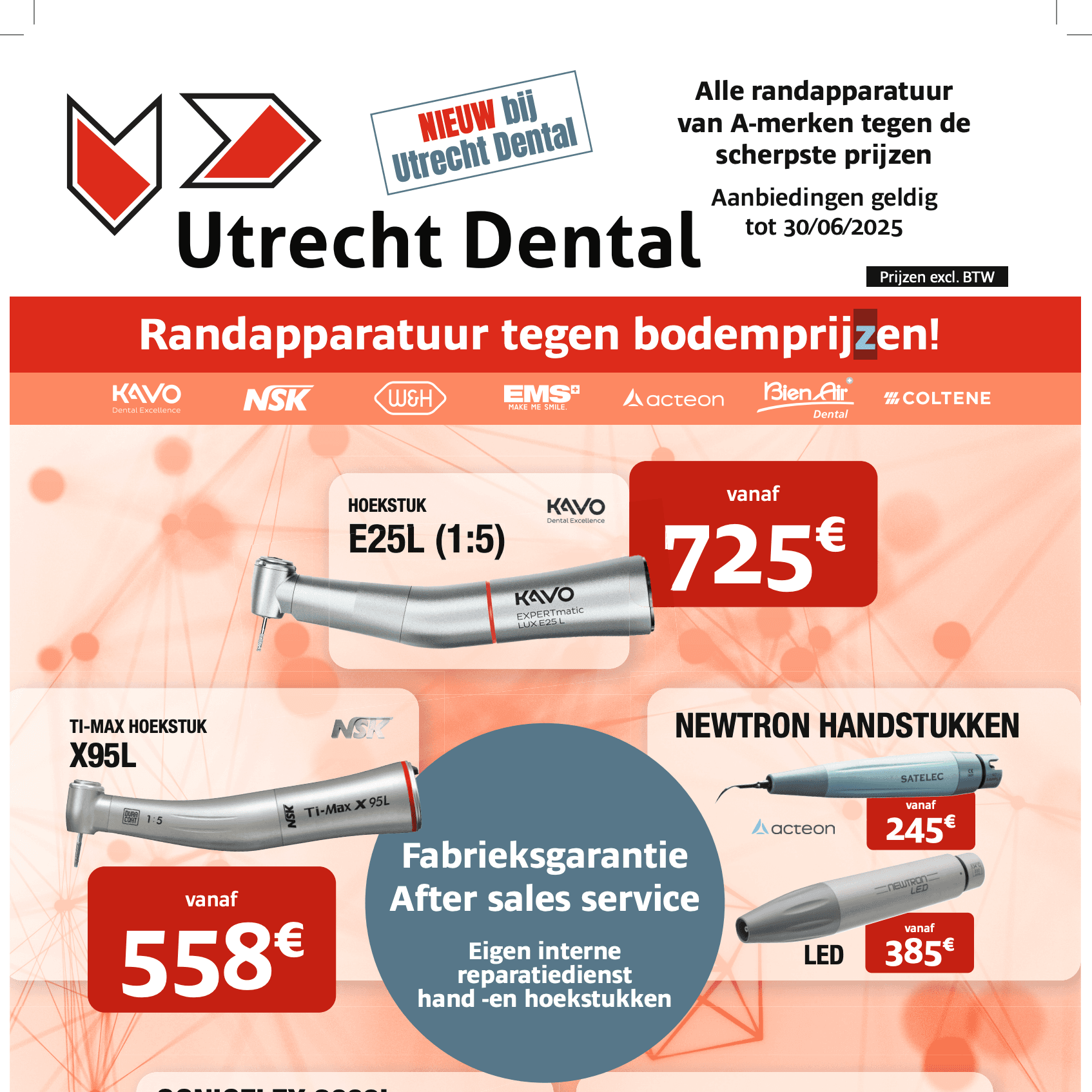 Hier vindt u onze brochures met uitgebreide informatie over producten en diensten. Wij bieden complete turn-key oplossingen voor tandheelkundige praktijken, van ontwerp tot onderhoud. U ontdekt er onze totaalinrichtingsservice, A-merken met laagste prijsgarantie, landelijke servicedienst en inspirerende voorbeelden van recente projecten en klantreferenties.